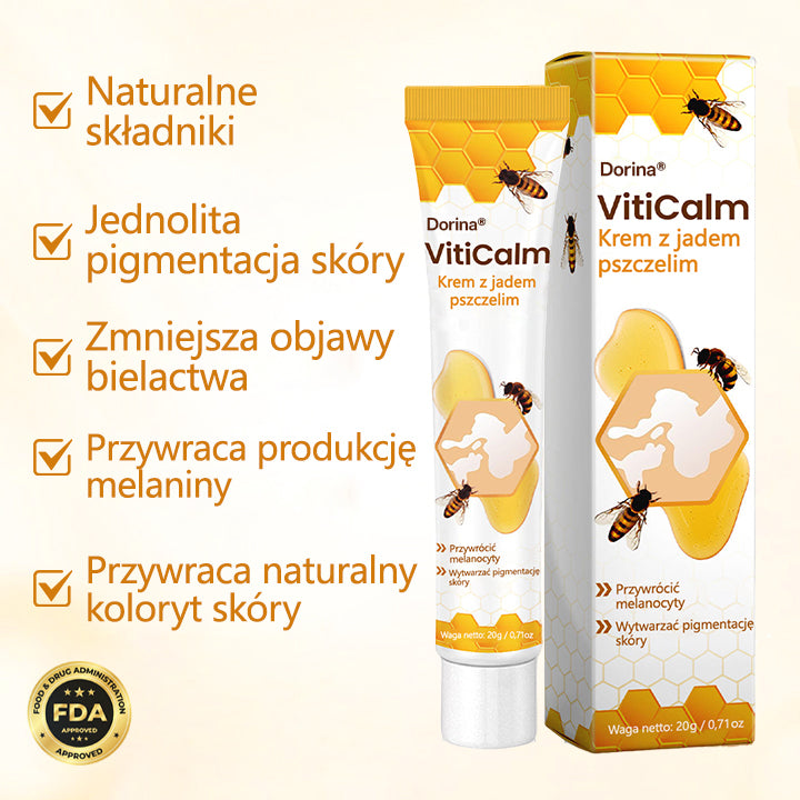 Dorina® VitiCalm Honey Bee Venom Cream jest wzbogacony o wysoce aktywny PLA2, który pomaga tłumić tę nieprawidłową odpowiedź immunologiczną, chronić melanocyty i stopniowo przywracać naturalny koloryt skóry.